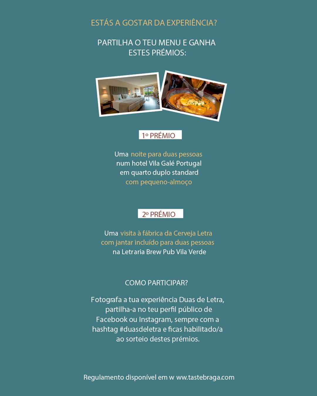 A Rota Duas de Letra é uma iniciativa organizada pela Associação Empresarial de Braga (AEB) in partnership with Cerveja Letra, que convida bracarenses e visitantes a embarcar numa deliciosa viagem gastronómica. Entre os dias 5 e 31 de maio, 16 espaços emblemáticos da cidade de Braga abrem as suas portas para receber os amantes da boa comida e da cerveja artesanal.